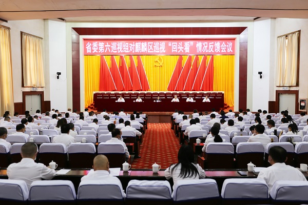 根據省委統一部署,2021年7月20日,省委第六巡視組分別向麒麟區委書記和領導班子反饋了巡視“回頭看”情況。會前,組長孫耕耘向省委常委、曲靖市委書記李文榮通報了巡視“回頭看”情況,省委巡視辦副主任李文俊傳達了省委書記阮成發在聽取十屆省委第十三輪巡視情況匯報時的講話要求。會上,孫耕耘向麒麟區委領導班子反饋了巡視情況,對巡視整改提出明確要求,曲靖市委常委、市紀委書記孟凡兵代表市委表態并提出具體整改要求,曲靖市委常委、麒麟區委書記解天云主持反饋會議并作表態講話。