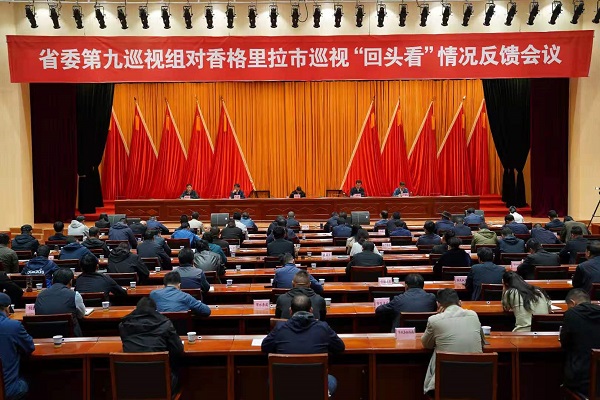 根據(jù)省委統(tǒng)一部署,2021 年7 月20日,省委第九巡視組分別向香格里拉市委書記和領(lǐng)導(dǎo)班子反饋了巡視“回頭看”情況。會(huì)前,組長陳興良向迪慶州委書記王以志通報(bào)了巡視“回頭看”情況,傳達(dá)了省委書記阮成發(fā)在聽取十屆省委第十三輪巡視情況匯報(bào)時(shí)的講話要求。會(huì)上,陳興良向香格里拉市委領(lǐng)導(dǎo)班子反饋了巡視情況,對(duì)巡視整改提出明確要求;迪慶州委有關(guān)負(fù)責(zé)同志代表州委表態(tài)并提整改具體要求;楊梓江主持反饋會(huì)議并作表態(tài)講話。