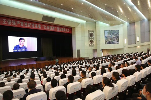 “對不起長期培養(yǎng)我的組織,對不起我的家人,對不起我的父母,對不起我的妻子……”大會以觀看警示教育片《權殤》開場。片中州委原書記王俊強聲淚俱下的自白、痛心疾首的懺悔,給與會者帶來了強烈的思想沖擊和心靈震撼。