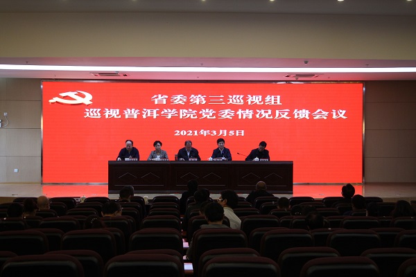 根據省委統一安排,2021年3月5日,省委第三巡視組向普洱學院黨委反饋了巡視情況。會前,巡視組組長程猛向普洱學院黨委書記陸平移交了巡視反饋意見,傳達了省委書記阮成發在聽取十屆省委第十二輪巡視情況匯報時的講話要求。會上,程猛組長向普洱學院黨委領導班子反饋了巡視情況,對巡視整改提出明確要求;普洱學院黨委書記陸平主持反饋會議并作表態講話。