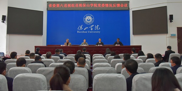 根據省委部署,2021年3月4日,省委第六巡視組向保山學院黨委反饋了巡視情況。會前,巡視組組長孫耕耘向保山學院黨委書記朱江移交了巡視反饋意見,并傳達了省委書記阮成發在聽取十屆省委第十二輪巡視情況匯報時的講話要求。會上,孫耕耘向保山學院黨委領導班子反饋了巡視情況,并對巡視整改提出明確要求;朱江主持反饋會議并作表態講話。