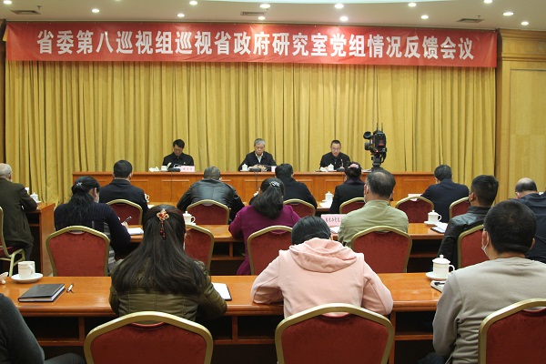根據省委統一安排,2021年3月5日,省委第八巡視組向省政府研究室黨組反饋了巡視情況。會前,巡視組組長孟端平向省政府研究室黨組書記、主任張士金移交了巡視反饋意見,傳達了省委書記阮成發在聽取十屆省委第十二輪巡視情況匯報時的講話要求。會上,孟端平向省政府研究室黨組領導班子反饋了巡視情況,并對巡視整改提出明確要求。張士金主持會議并作表態發言。