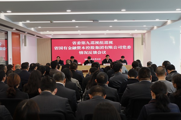 根據省委統一安排,2021年3月5日,省委第九巡視組向省國有金融資本控股集團有限公司(以下簡稱“金控集團”)黨委反饋了巡視情況。會前,巡視組組長包書向金控集團黨委主要負責人邱錄軍移交了巡視反饋意見,傳達了省委書記阮成發在聽取十屆省委第十二輪巡視情況匯報時的講話要求。會上,包書向金控集團黨委領導班子反饋了巡視情況,對巡視整改提出明確要求;邱錄軍主持反饋會議并作表態講話。