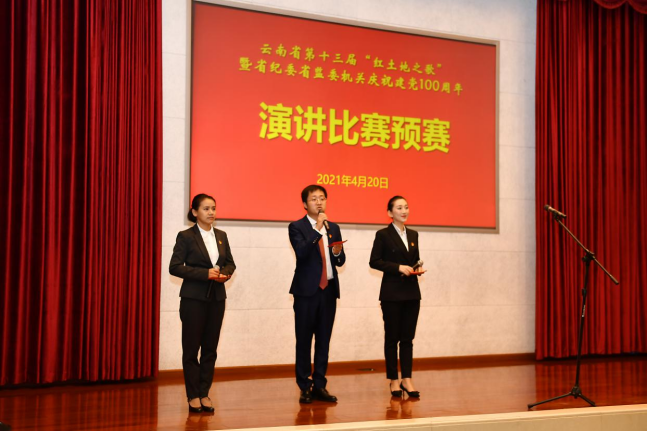 百年征程波瀾壯闊,百年初心歷久彌堅。為熱烈慶祝中國共產黨成立100周年,提振委機關黨員干部履行新使命,邁向新征程的精氣神,4月20日,省紀委省監委機關舉辦云南省第十三屆“紅土地之歌”演講比賽機關選拔賽預賽。活動邀請云南省演講學會會長、云南師范大學教授李暾、云南省演講學會演講研究專家李志勤、辛勤等擔任評委。