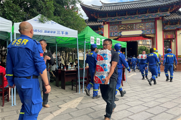 漾濞縣紀委監委第一時間通知全體紀檢監察干部返崗,積極參與抗震救災,幫助搬運救災物資,為抗震救災貢獻力量。(楊曉琳 攝)