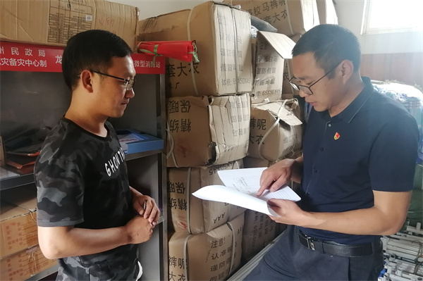 鶴慶縣紀委監委及時跟進,派出工作組到龍開口鎮開展監督檢查,查看救災物資儲備倉庫中的物資儲備情況和工作臺賬。(李桂芳 攝)