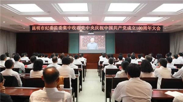 昆明市紀(jì)委監(jiān)委組織紀(jì)檢監(jiān)察干部集中觀看慶祝中國(guó)共產(chǎn)黨成立100周年大會(huì)。
