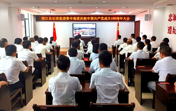 7月1日,綏江縣紀(jì)委監(jiān)委黨員干部集中觀看慶祝中國(guó)共產(chǎn)黨成立100周年大會(huì)。