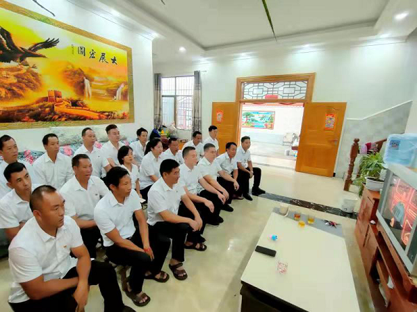 云南省德宏州芒市紀(jì)委監(jiān)委駐村工作隊(duì)員和村干部一起收聽(tīng)收看慶祝中國(guó)共產(chǎn)黨成立100周年大會(huì)。