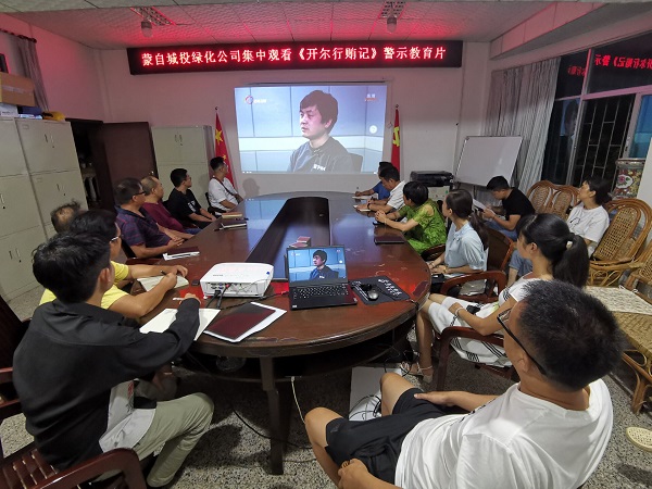 蒙自市城投綠化公司組織員工集中觀看《開爾行賄記》。(王敏佳 攝)