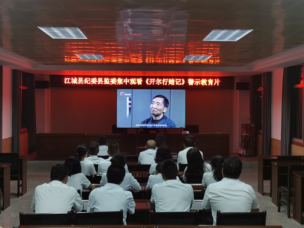 江城哈尼族彝族自治縣紀委監委組織全體黨員干部集中觀看《開爾行賄記》。