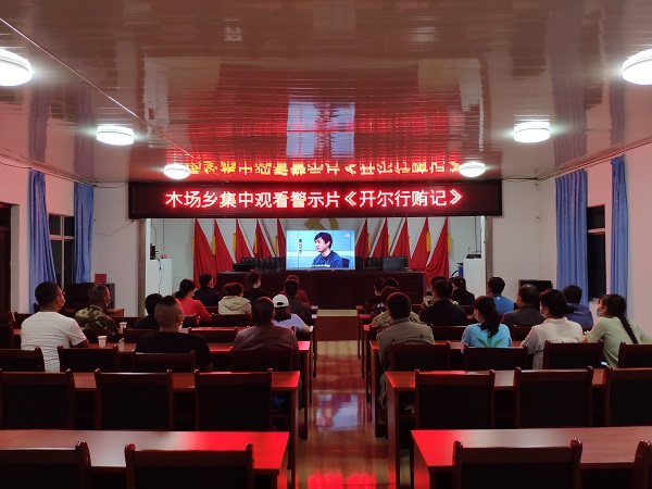 鎮康縣木場鄉干部職工集中觀看《開爾行賄記》。(秧曉龍 攝)