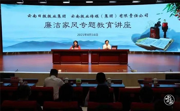 此次講座是云報集團繼今年5月14日“感恩有您•筑夢同行”家風(fēng)建設(shè)懇談會活動之后“清廉云報”建設(shè)的推進和深化。云報集團黨委、傳媒集團公司黨委班子成員,集團直屬機關(guān)黨委委員、紀委委員,集團和集團公司各部、室、中心、公司,各系列報刊、網(wǎng)站的主要負責(zé)人,各黨支部委員及黨員代表280余人聆聽了講座。講座得到了省紀委省監(jiān)委駐省委宣傳部紀檢監(jiān)察組的大力支持,紀檢監(jiān)察組組長帶領(lǐng)駐部紀檢監(jiān)察組全體同志蒞臨指導(dǎo),同時把參加當(dāng)天的活動作為駐部紀檢監(jiān)察組黨支部主題黨日活動的內(nèi)容之一。