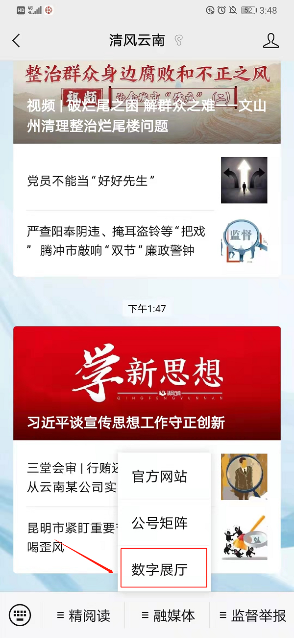 您可以通過以下方式進入云南省反腐倡廉警示教育基地“云上數字展廳”: