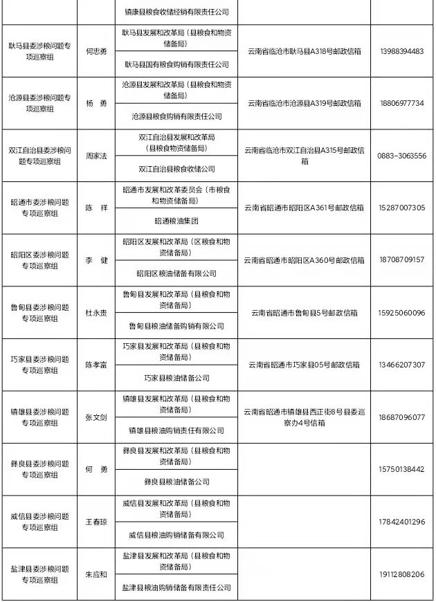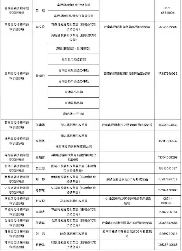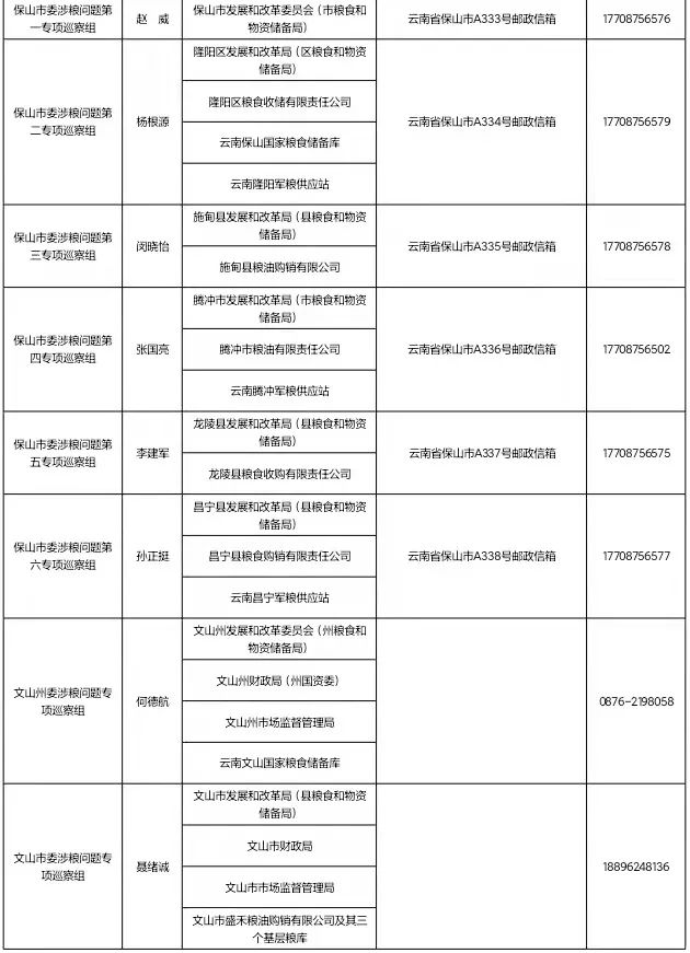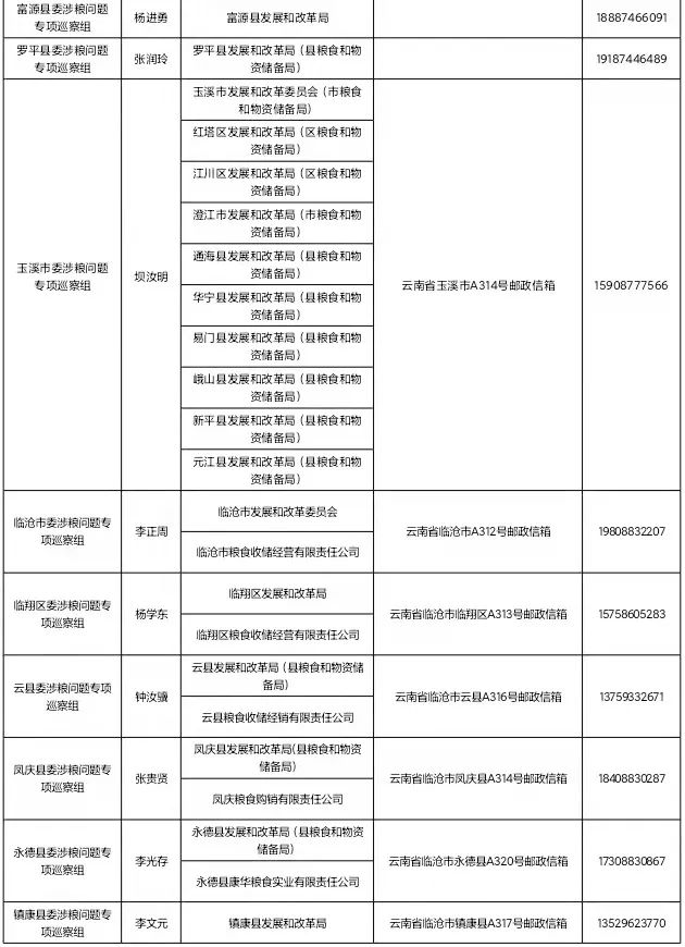 根據省委決策部署和省委巡視工作領導小組具體安排,省委涉糧問題專項巡視組分別對省糧食和物資儲備局黨組、云南農墾集團黨委開展涉糧問題專項巡視,并重點了解省發展和改革委員會、省財政廳、省市場監督管理局和云天化集團有限責任公司等單位黨組織的涉糧工作落實情況。各州(市)委涉糧問題專項巡察組同步組織對本地區涉糧重點單位開展涉糧問題專項巡察,并重點了解涉糧有關單位的涉糧工作落實情況;同時,16個州(市)黨委結合本地區實際,統籌市縣兩級巡察力量,采取統合巡察、交叉巡察、提級巡察、點穴式巡察等方式,堅持以上看下與以下看上相結合,負責了解縣(市、區)黨委、政府落實屬地管理主體責任情況。