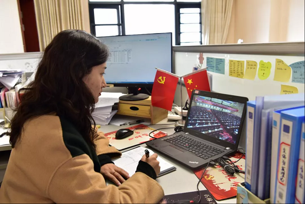 石林彝族自治縣紀委監委干部利用互聯網觀看省第十一次黨代會直播。(豈艷攝)