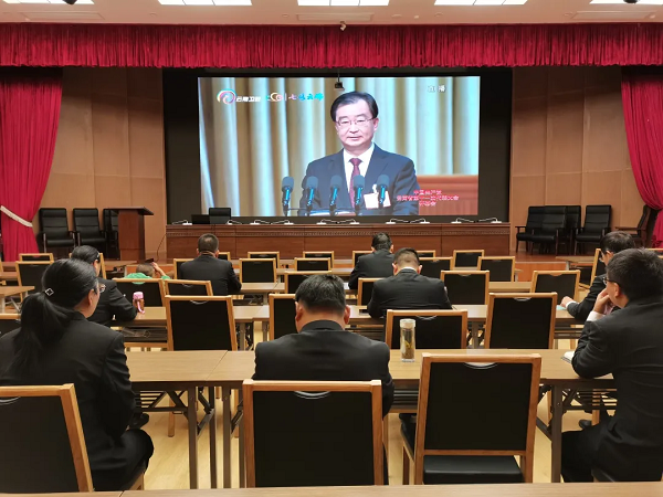 漾濞彝族自治縣紀委監委駐縣人民法院紀檢監察組召集干部職工集中收看中國共產黨云南省第十一次代表大會開幕實況。