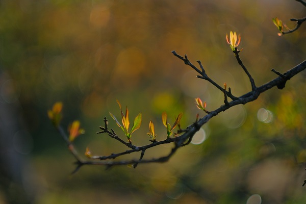 “雨水草萌動,嫩芽往上拱。”石榴樹冒出嫩芽,仿佛一團團一簇簇的小火苗,充滿著希望,給人無限遐想。(張玨 攝)