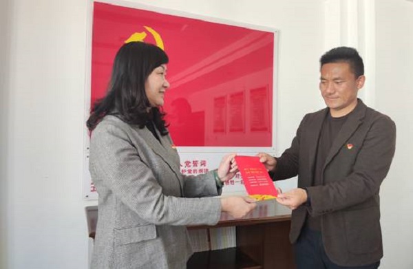 堅(jiān)持以思想建設(shè)為核心立德樹人,在黨員“政治生日”、國(guó)慶節(jié)、建黨節(jié)等重要時(shí)間節(jié)點(diǎn)開展形式多樣的教育活動(dòng),以“儀式感”點(diǎn)燃年輕干部?jī)?nèi)心的“小宇宙”,讓年輕干部心中始終揣著一團(tuán)火。圖為紀(jì)檢監(jiān)察組領(lǐng)導(dǎo)同志為年輕黨員干部送上“政治生日”祝賀。