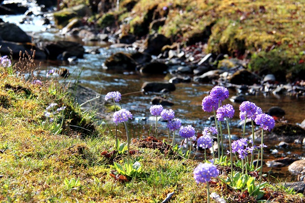 暖意融融的春光中,潺湲的溪水,踏著輕快的節奏淌過山野,清清曲水上,碧草如茵。紫色的春花也從草叢中紛紛探出頭來,演繹著春的盎然和爛漫。(曹保相 攝)