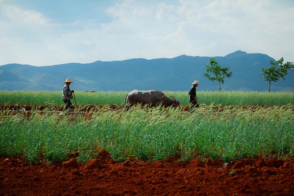 清明時節,氣溫升高,雨水增多,正是萬物生長的好時機,農民抓緊節令忙著春耕勞作,田間地頭一派忙碌景象。(王石兵 攝)