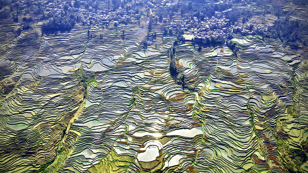 “萬物生長此時,皆清潔而明凈。故謂之清明。”清明至,迎來春耕春種的大好時節,層層梯田已逐漸被秧苗鋪滿,片片綠意在陽光的映射下,點綴出盎然春意。(李少福 攝)