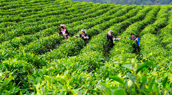 春耕時節,氣清景明,萬物皆顯,西盟縣翁嘎科鎮茶園連片的茶葉清透碧綠,透出勃勃生機。(羅嘉 攝)