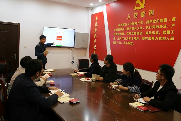 紀(jì)檢監(jiān)察干部在黨小組會(huì)上集中學(xué)。(馬斯婷 攝)