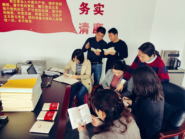 龍江鄉(xiāng)黨員干部認(rèn)真學(xué)習(xí)叢書(shū)內(nèi)容。(丁前晨 攝)