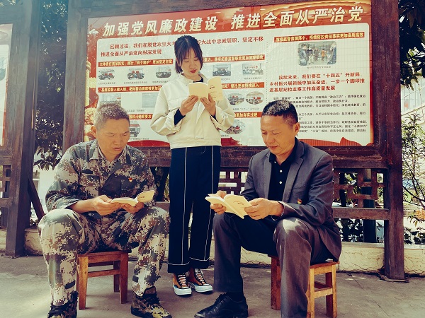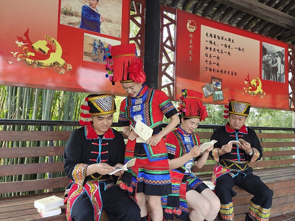 阿昌族群眾學(xué)習(xí)《云南少數(shù)民族廉潔文化知與踐》。(王龍芹 攝)