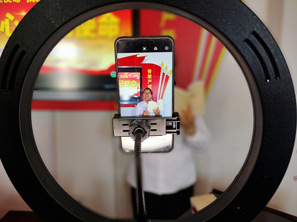 縣紀(jì)委監(jiān)委宣傳部拍攝叢書(shū)講解視頻。(王龍芹 攝)