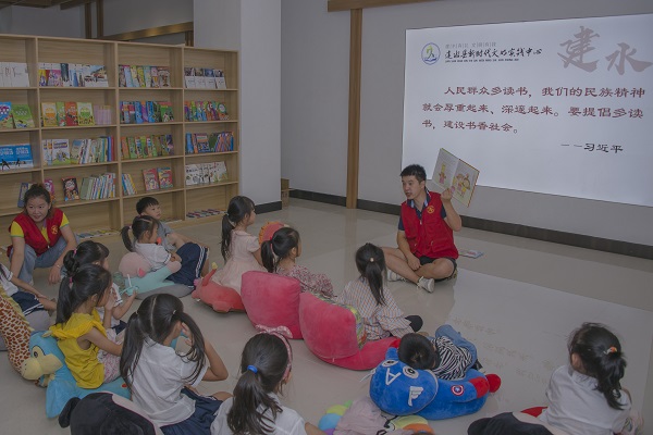 建水縣舉辦“廉潔文化潤(rùn)童心”主題閱讀活動(dòng)。志愿者和孩子們共同閱讀繪本,引導(dǎo)孩子們要做講廉潔、守誠(chéng)信的人。(薛興業(yè) 攝)