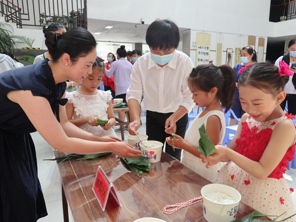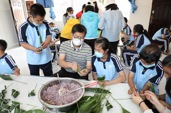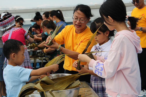 建水縣“愛心媽媽”巾幗志愿團隊與孩子們一起包粽子,體驗端午節文化習俗,弘揚傳統文化。(建水縣紀委監委 譚麗 攝)
