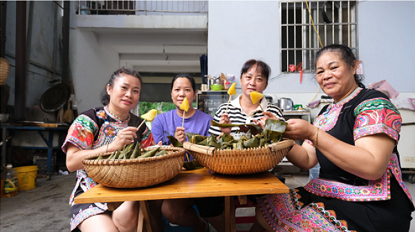 小小的粽子包含著對家人的濃濃愛意,個舊市小蔓堤村村民正在準備端午節全家團聚時吃的粽子。(個舊市紀委監委 張航 攝)