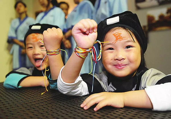 開遠市的萌娃們和父母一起參加端午節傳統民俗文化體驗活動,感受傳統文化的樂趣。(開遠市紀委監委 開紀軒 攝)