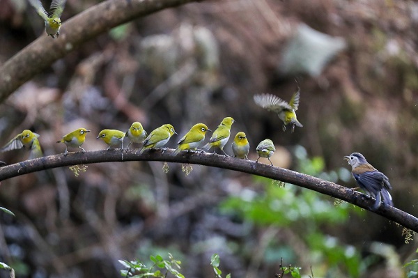 雨后清晨,枝頭上的鳥雀嘰嘰喳喳地呼喚晴天。(尹磊 攝)