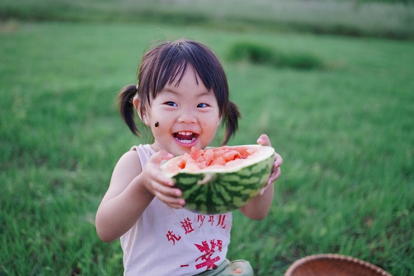 夏至時節,暑氣漸長。一口冰爽脆甜的西瓜,掃去盛夏的燥熱與煩悶,讓孩子擁有了一整天的好心情。(任智云 攝)