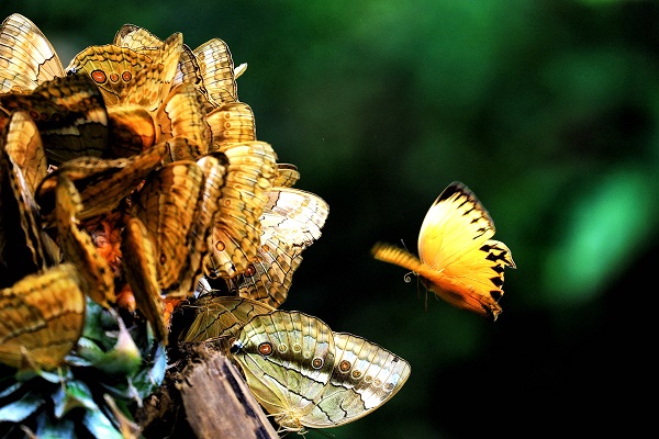 夏至時節,云南的蝴蝶谷迎來蝴蝶大爆發,成千上萬只箭環蝶撲閃著翅膀,在林間翩翩起舞,山谷宛如一片金色海洋。(汪華 攝)