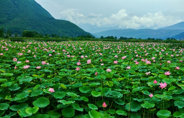 時令小暑綠色深,滿塘荷花正繽紛。荷花盛開時,小暑節氣悄然而至。(王龍芹 攝)