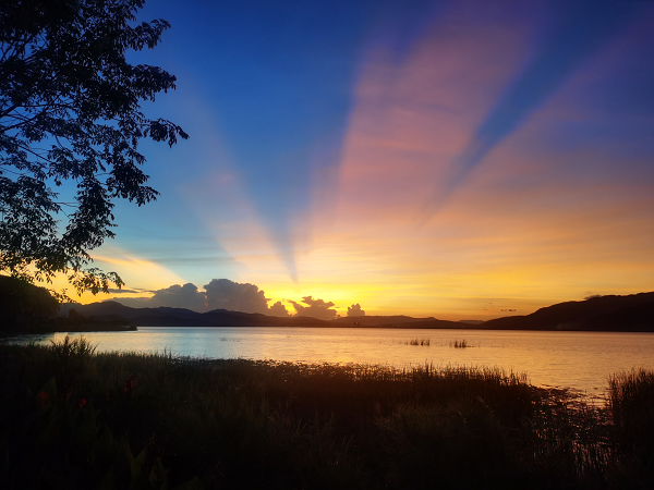 突然,天邊噴出一道燦爛無比的霞光,剎那間,天空被染成了橙紅色,就像是一片波瀾壯闊的橙色海洋,凸顯出異龍湖別有的盛夏美景。(石屏縣紀委監(jiān)委 何佳 攝)