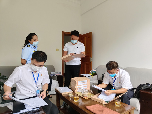 永德縣紀委監委組建專項紀律檢查組,聯合縣市場監督管理局等部門深入商場超市對“天價月餅”、“天價茶”及蟹卡蟹券等節禮進行監督檢查,嚴查背后的腐敗和作風問題。(李健銳 攝)