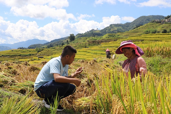 綠春縣紀委監委組織監督力量下沉農業生產一線,深入三猛鄉燈馬村向梯田紅米種植農戶了解有關情況。(楊處梅 攝)
