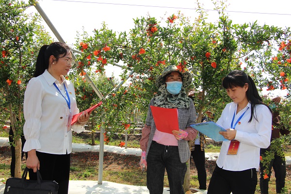 蒙自市紀委監委聚焦鄉村振興特色產業重點項目開展“嵌入式”監督,組織紀檢監察干部走訪萬畝石榴基地,保障惠農政策落地落實,幫助群眾解決“急難愁盼”問題。(徐雪 攝)