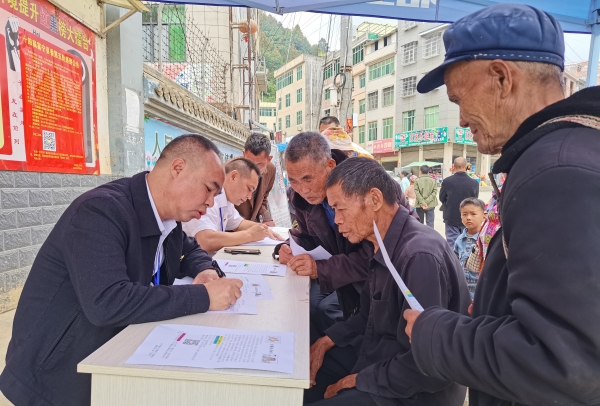 富寧縣紀委監委聚焦鄉村振興重點任務,拓寬線索來源渠道,提高監督質效。圖為該縣紀檢監察干部利用趕集日到花甲鄉集市開展接訪及信訪知識宣傳活動。(鄒顯梅 攝)