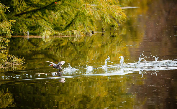 立冬,有秋收冬藏的含義,萬物活動(dòng)趨向休止,以冬眠狀態(tài),養(yǎng)精蓄銳為來春生機(jī)勃發(fā)做準(zhǔn)備。遠(yuǎn)處的湖面一只野鴨用它那楓葉狀得腳蹼在平靜的水面上繡出一串美麗的水花,它似乎想打破冬的寂靜。(尹彪 攝)