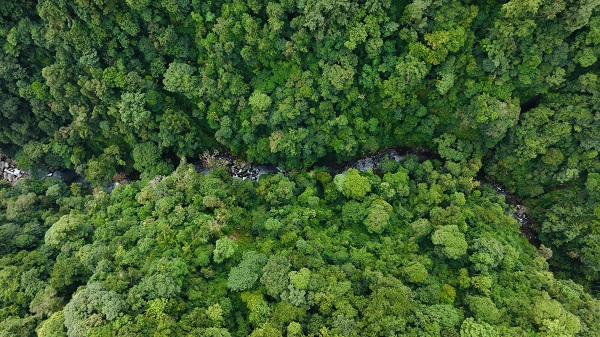 立冬時(shí)節(jié),黃連山國家級(jí)自然保護(hù)區(qū)依舊氣候溫和、綠意盎然。俯瞰山野,青山碧水、綠林秀峰,好似一塊碧綠的翡翠鑲嵌于大地之間。(王興智 攝)