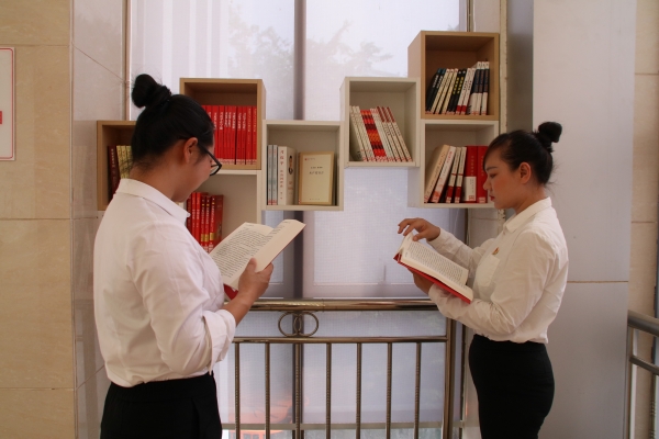 丘北縣紀委監(jiān)委“清廉閱讀角”經(jīng)常舉辦讀書分享會活動,讓大家通過讀書增智、讀書思廉、讀書養(yǎng)德。圖為該縣紀檢監(jiān)察干部在閱讀中感受翰墨飄香、廉風拂面。(王靈惠 攝)