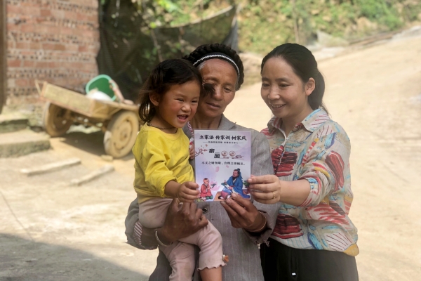 馬關(guān)縣紀委監(jiān)委通過開展書寫“廉潔家書”、評選“廉潔家庭”、建設(shè)廉潔文化廣場、講家風家訓故事等系列廉潔文化活動,讓廉潔文化浸潤人心。圖為該縣紀檢監(jiān)察干部向群眾講述家風故事。(章荻 攝)