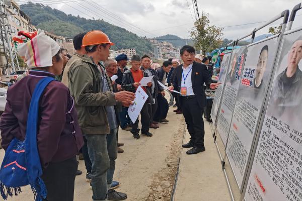富寧縣采取聽、談、查、講、訪、看等方法,面對面收集了解群眾訴求,點對點推動解決群眾“急難愁盼”問題。圖為該縣巡察干部在花甲鄉集市開展廉政教育、接訪及信訪知識宣傳活動。(鄒顯梅 攝)