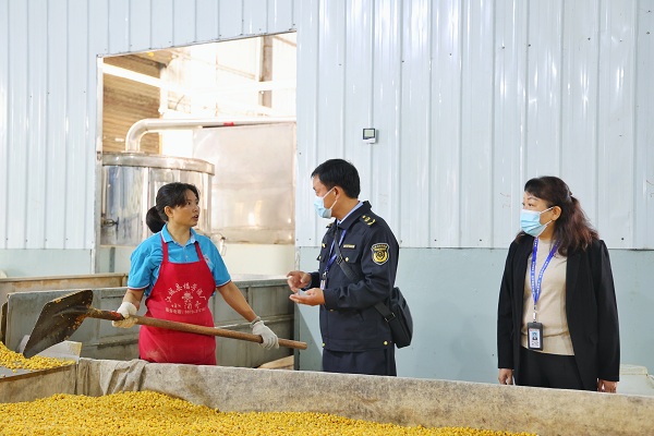 江城縣紀委監委深入企業一線了解惠企政策落實、職能部門工作作風等情況,以精準監督推動破解損害營商環境的痛點、難點、堵點問題。圖為該縣紀委監委聯合縣市場監督管理局到某酒廠走訪調研,與企業工作人員了解稅費減免等助企紓困政策落實情況。(沈雷 攝)